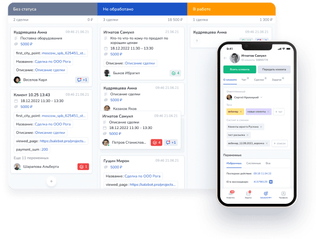 Организуйте отдел продаж в функциональной CRM без лишних затрат и дополнительных интеграций.